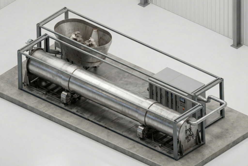 Stationary in-vessel systems are designed for high-volume organic waste streams. These rotating drum reactors are permanently installed and integrated with existing waste handling infrastructure. They offer precise temperature control, aeration management and SCADA-based monitoring.